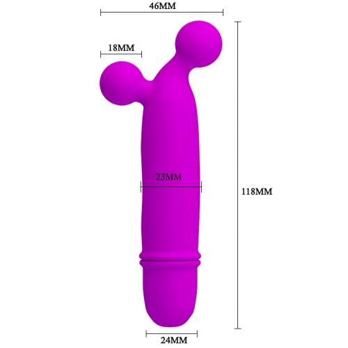 Стимулятор имеет гладкий ствол со слегка ребристой поверхностью, а также 2 выступа в виде шариков, направленных в противоположные стороны.