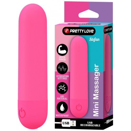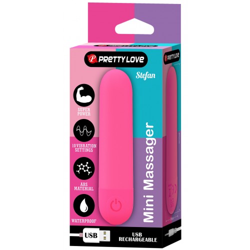 Перезаряжаемая вибропуля Pretty Love Stefan с 10 режимами вибрации малиновая