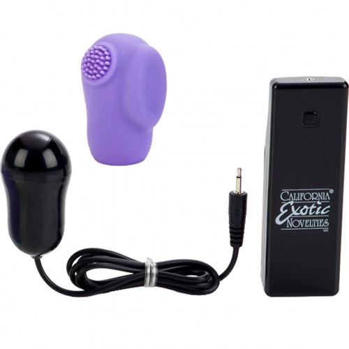 насадкой из фиолетового силикона (имеет два стимулятора: ложечку и щеточку).