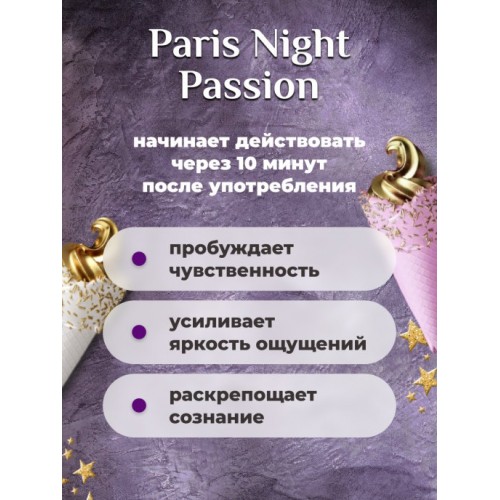 Афродизиак Paris Night Passion основан на сочетании природных и растительных экстрактов, которые обеспечивают приток питательных веществ.